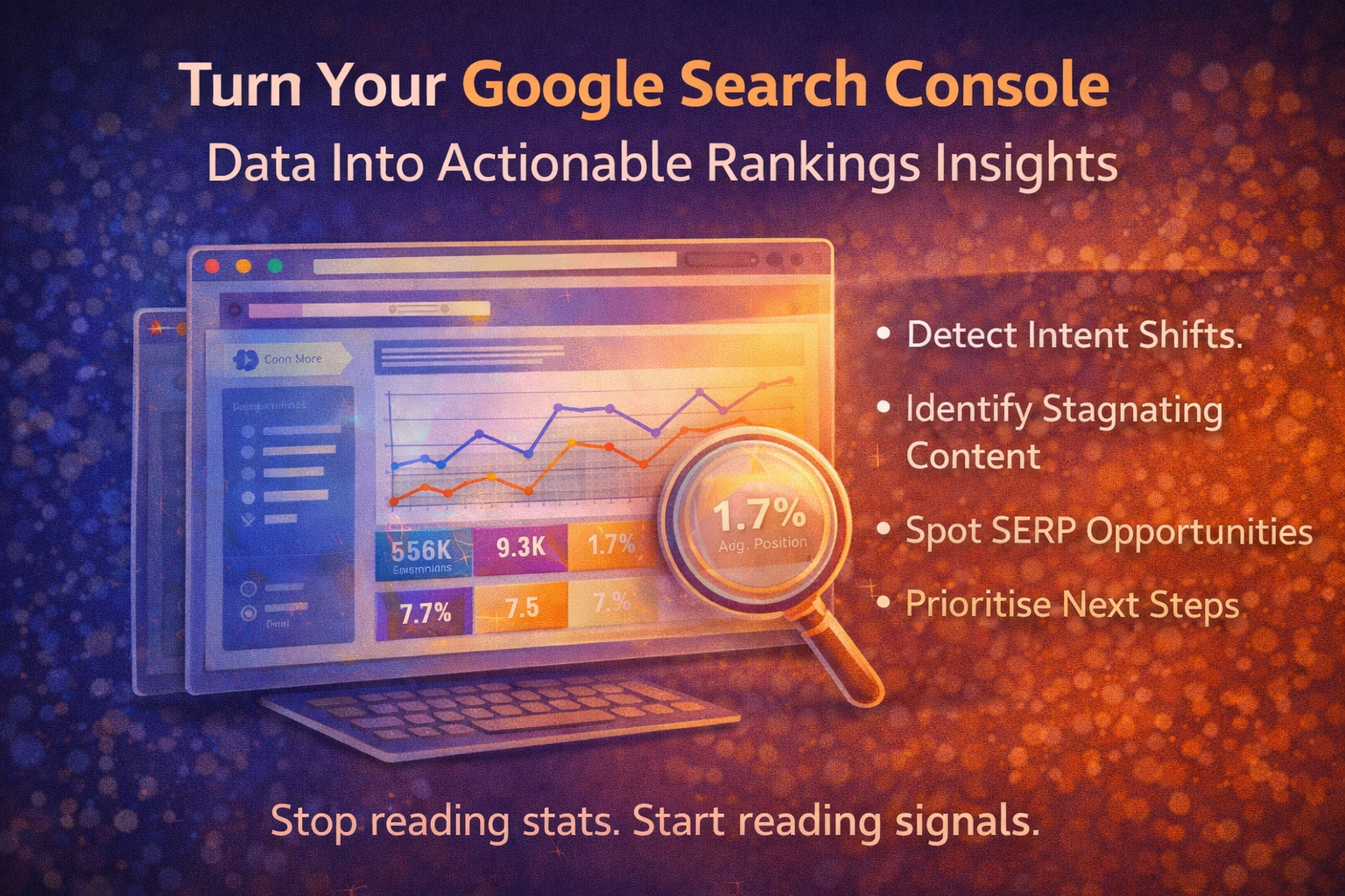 actionable seo insights, cannibalisation seo, detect seo intent shifts, free website seo checker, google search console insights, google search data analysis, identify ranking opportunities, improve click through rate seo, improve website seo, ranking growth strategy, search console analysis, search console impressions vs clicks, seo audit, serp feature optimisation, stagnating content seo, website seo checker